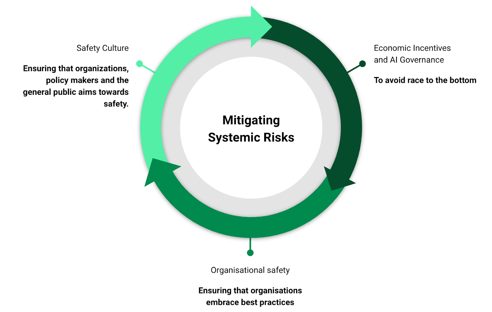 Đồng bộ hóa các cơ chế khuyến khích kinh tế với mục tiêu an toàn là thách thức chính. Hiện nay, áp lực thương mại mạnh mẽ có thể khuyến khích phát triển năng lực nhanh chóng, có thể ảnh hưởng đến nghiên cứu an toàn hoặc triển khai thận trọng. Cần có các cơ chế thưởng cho an toàn hoặc phạt cho hành vi liều lĩnh để tránh các tác động tiêu cực: