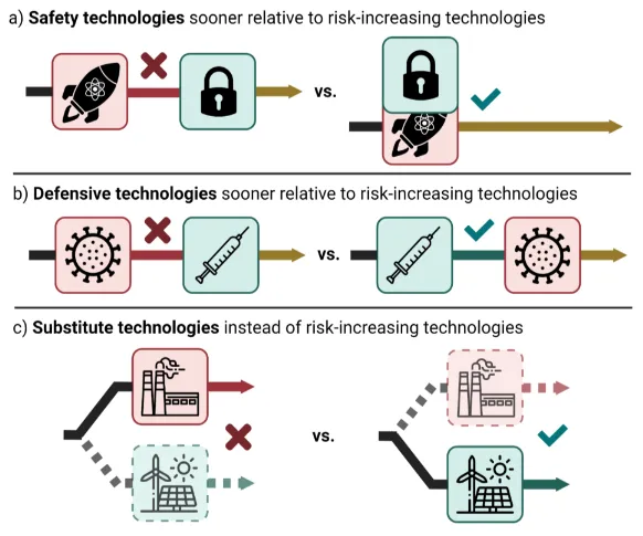 Các cơ chế mà sự phát triển công nghệ khác biệt có thể giảm thiểu tầm ảnh hưởng tiêu cực đối với xã hội (Buterin, 2023).